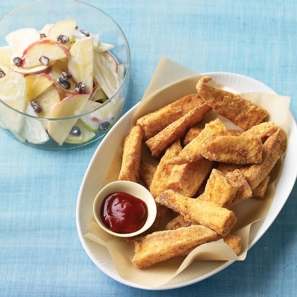 Puedes variar en los alimentos que le das a tus pequeños, por ejemplo unos nuggets de pollo con una ensalada.