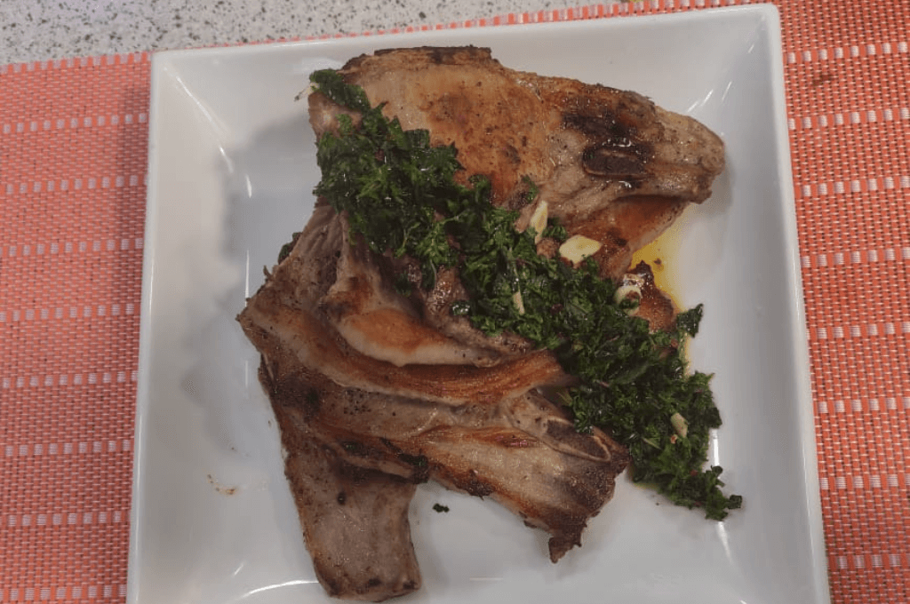 Chuleta de cerdo con chimichurri de menta Almuerzos, Cenas