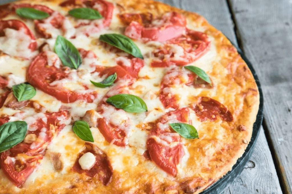Pizza margarita con base de garbanzos Almuerzos, Cenas, Meriendas