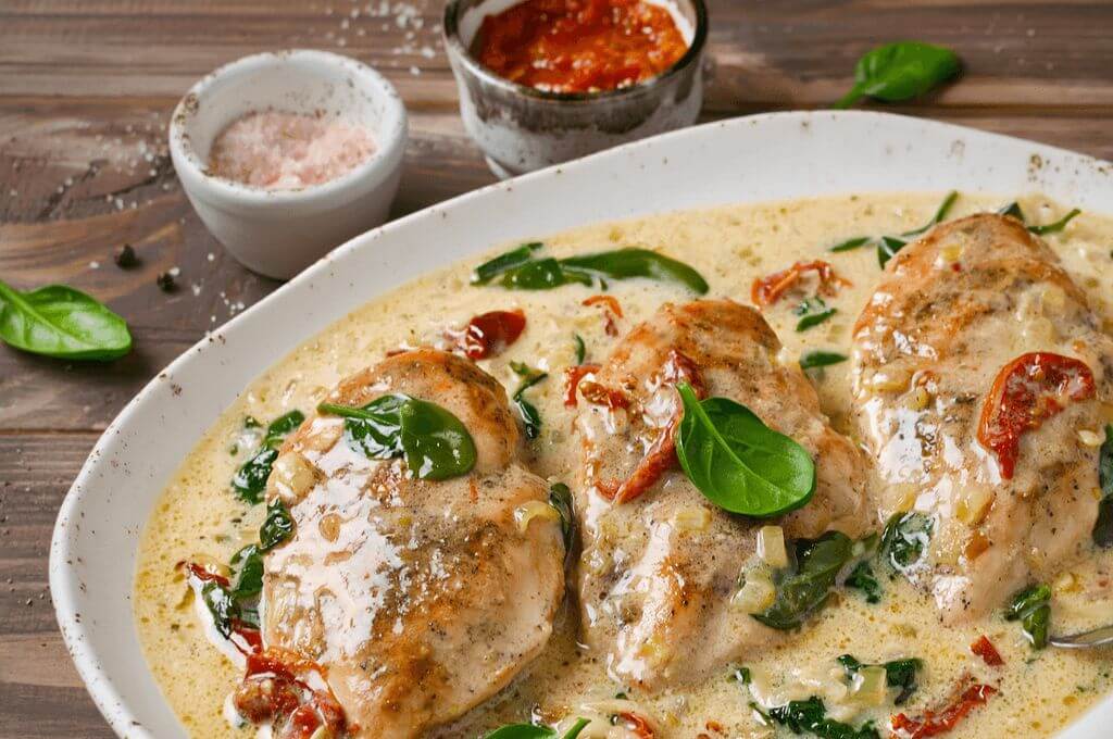 Filete de pollo con espinaca y tomates Almuerzos, Cenas
