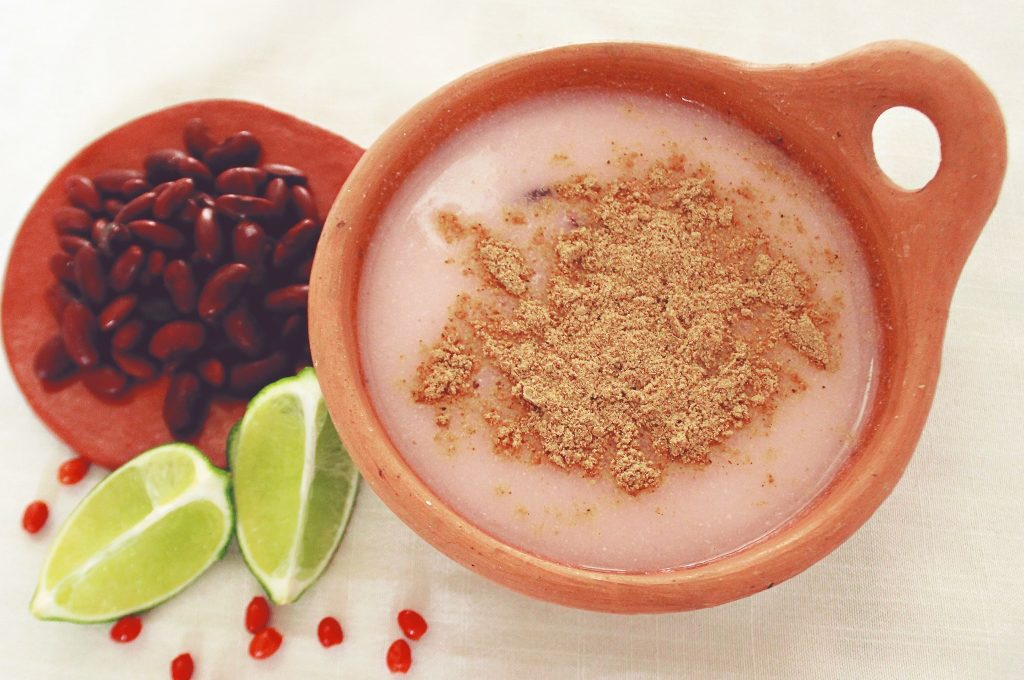 Colocar 2 libras de maíz cocido en la cacerola y cubrirlo con agua, dejar reposar durante 8 horas sin taparlo. Pasadas las 8 horas licuarlo con la misma agua en la que ha reposado, agregar un poco más de líquido y colarlo con una manta para que el atol quede más líquido. Agregar sal al gusto y cocinar en una cacerola a fuego medio durante 45 minutos removiendo constantemente. Retirar. Acompañar con frijoles enteros, aiguaste (semilla de ayote molida), limón y chile.