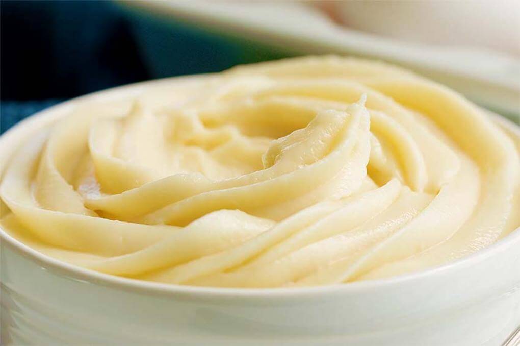 Verter en una cacerola y cocinar a fuego medio, mover constantemente con un batidor de globo, cuando la mezcla espese retirar del fuego y seguir batiendo. Añadir 3 cucharadas de mantequilla amarilla y batir hasta integrar bien, reservar en un tazón tapado con papel film. Refrigerar por 10 minutos antes de utilizar.