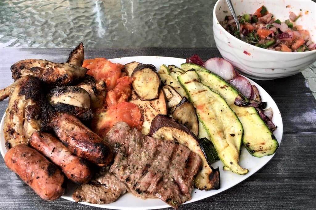 El menú preparado se enfocó en los sabores tradicionales hondureños, pero con una combinación extra de sabores. Además, se buscó probar diversos cortes y tipos de carne de Supermercados La Colonia que no faltan en los asados que hacemos en casa. En el que se incluía pollo, res y chorizo. También los participantes pudieron preparar unos vegetales grillados, un chimichurri, un chismol picante y una cebolla con salsa de cerveza negra Tierra Aventura de Cervecería Perla Negra.