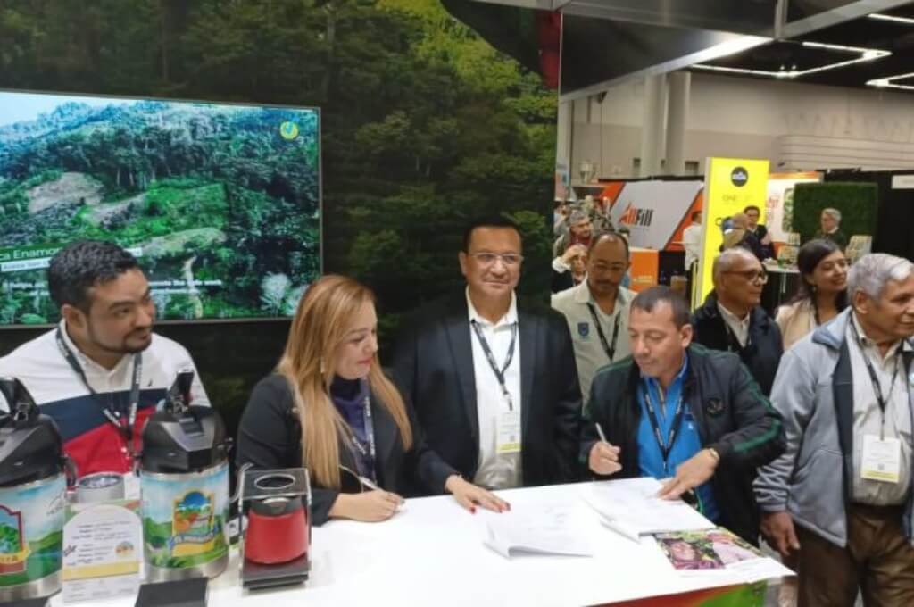 El evento también fue en marco para que los ejecutivos de IHCAFE firmaran un convenio con la Asociación de Cafés Especiales, una sociedad del mundo en aproximadamente más de cien países a nivel mundial, en conjunto con el banco holandés RaboBank, esto con el el fin de habilitar al menos unos tres mil productores de café hondureños en lo que resta de este año 2023, para vender créditos de carbono al mercado.