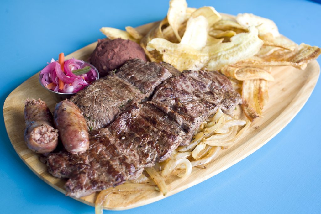 La delicia de la carne y chorizos a la parrilla, es la oferta principal del lugar.