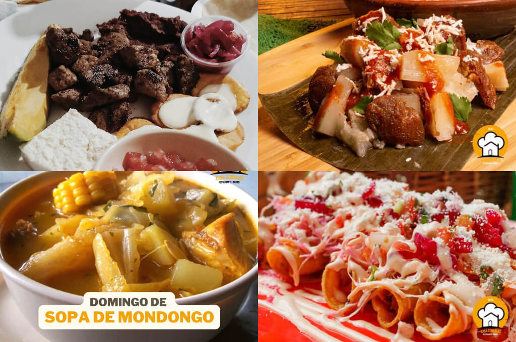 «Tenemos la comida hondureña típica, que son del gusto y paladar de muchas personas, como son el plato típico de carne de cerdo con aguacate, frijoles, tortillas, cuajada, chismol; además, los famosos pastelitos de perro, yuca con chicharrón, tacos fritos, diferentes tipos de sopas como tapado, mondongo, de res, de albóndigas de pollo, tajadas de plátano con carnes cebollas. y entre bebidas tradicionales como; el pozol, te, y limonadas”, contó Carmen.