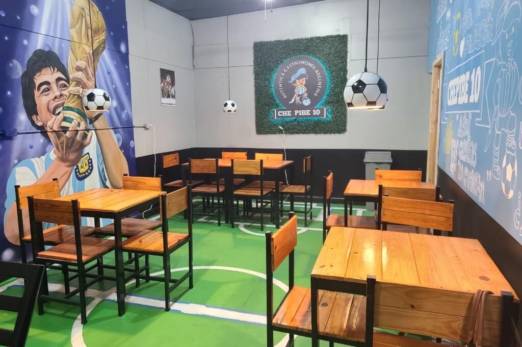 En el interior del local se puede observar un mural del exfutbolista argentino Diego Maradona, las lámparas en forma de balón y toda la decoración con un concepto futbolistico. Sus espacios hacen que el cliente pueda comer tranquilamente mientras disfruta de un ambiente con la cultura argentina.
