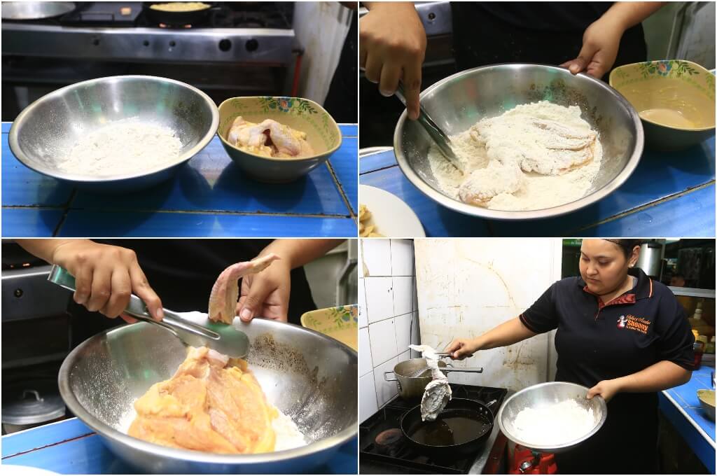 Este es el ingrediente principal del platillo, y hay varias cosas que debes tomar en cuenta para que te quede crujiente por fuera, jugoso por dentro y con un sabor inigualable. Josselin Claro de Pollos Shonny, nos comenta que ella prefiere primero condimentar el pollo con mostaza, un punto de mayonesa, comino y consomé, y que previamente el pollo debe estar bien lavado con jugo de limón.