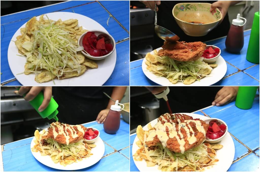 Las salsas le dan un extra de sabor al pollo con tajadas.