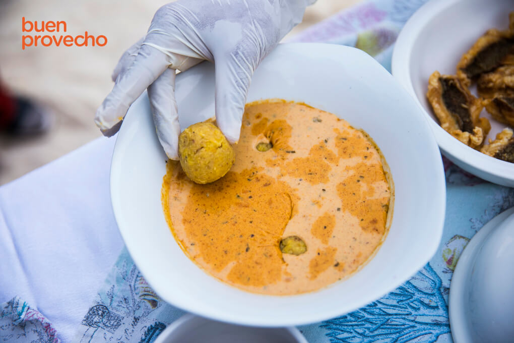 La machuca se hace una especie de bolitas y se sirven en la sopa marinera.
