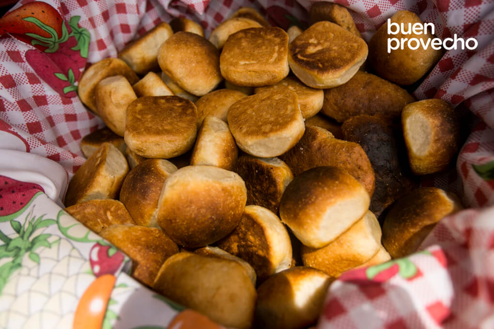 Precalentar el horno a 350 ºF y cernir 2 tazas de harina de trigo. Disolver ½ cucharada de levadura instantánea en ¼ taza de agua tibia, agregar una cucharada de harina y mezclar, dejar reposar hasta que esté burbujeante. Agregar 1 cucharadita de sal, 1 cucharada de azúcar y ½ barra de mantequilla amarilla templada a la harina. Incorporar hasta que no queden grumos. Agregar la levadura al harina, amasar por dos minutos. Incorporar poco a poco ½ taza de leche de coco y 1 cucharadita de esencia de coco, amasar hasta obtener una masa homogénea. Hacer bolitas y dejar reposar tapadas con plástico por 30 minutos. Hornear por 20 minutos, hasta que estén dorados. Servir.