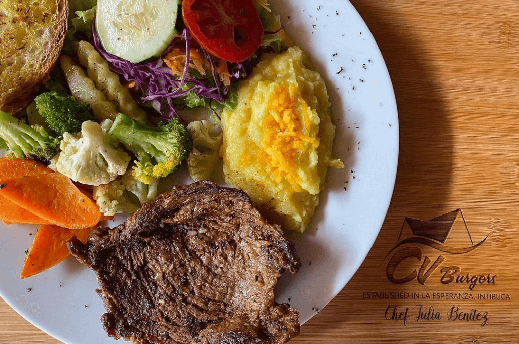 CV Burgers es un ingenioso restaurante en La Esperanza, Intibucá, el cual es idóneo si quiere degustar deliciosas hamburguesas artesanales y productos 100% naturales y de calidad. Con más de 10 años de trayectoria, ofrecen los mejores sabores americanos para que te deleites con sus ricos sabores.