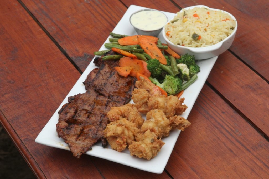 Podrás elegir cualquiera de los platillos de su menú. Desde boneless, alitas, nachos, sopas, sándwiches, hamburguesas y su especialidad de carnes a la parrilla. El mar y tierra también es una buena opción para disfrutar.