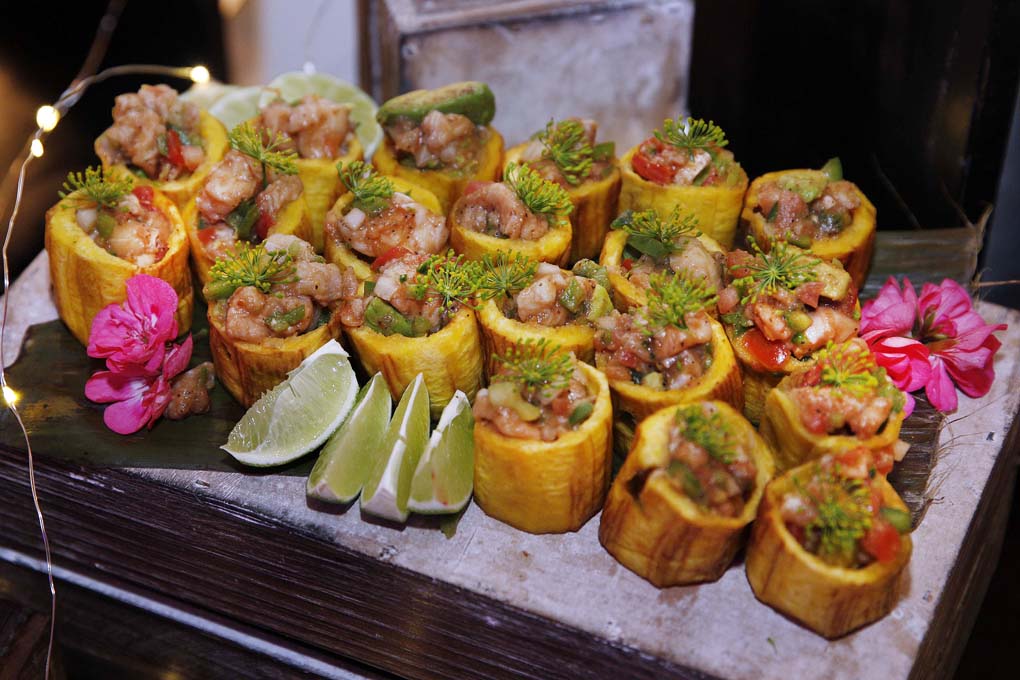 Otro de los platillos que robó miradas y halagos fue la deliciosa combinación de una canastita de plátano rellena de delicioso ceviche de pescado con un delicioso sofrito, acompañado de gajos de limón. El creador de la Economía Naranja expresó que al final toda actividad gastronómica no solo se trata de comer bien, se trata también de alimentar el alma. Y es importante que cada país le de su valor a la industria gastronómica.