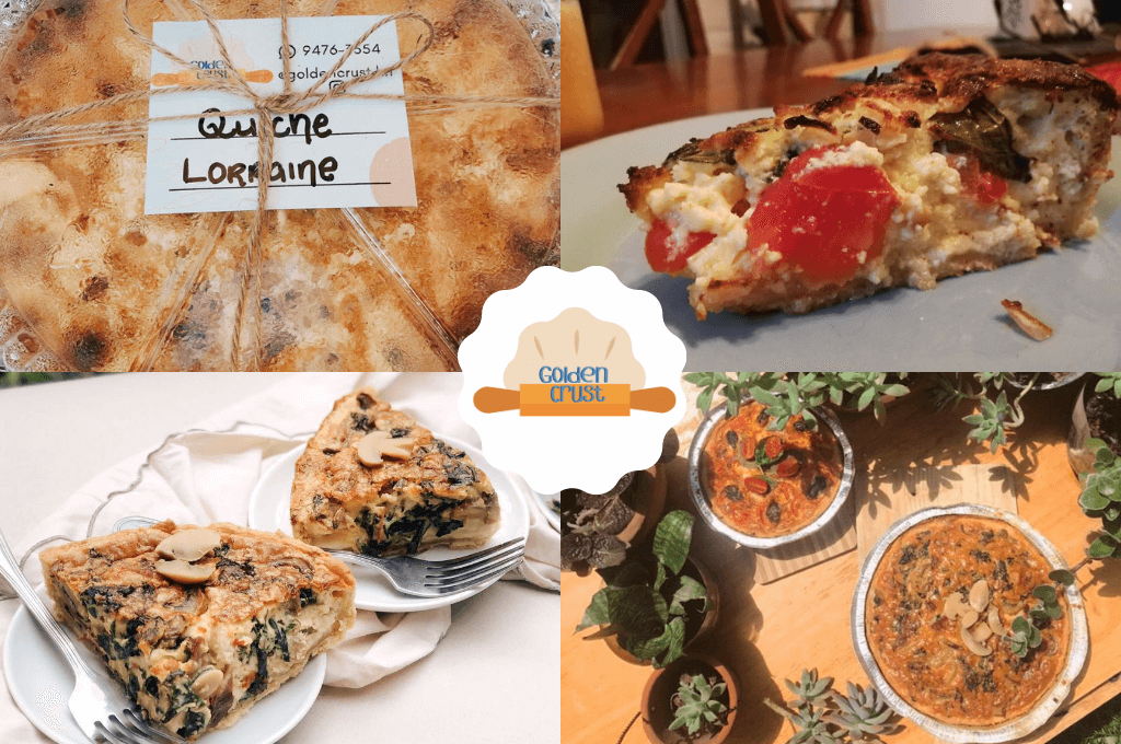 Cada uno de los quiches están hechos de tres principales elementos: un crujiente y delicioso crust, una base de crema de leche y huevo, y sus apetitosas especialidades, que te harán probar cada uno de los quichés que ofrece Golden Crust.