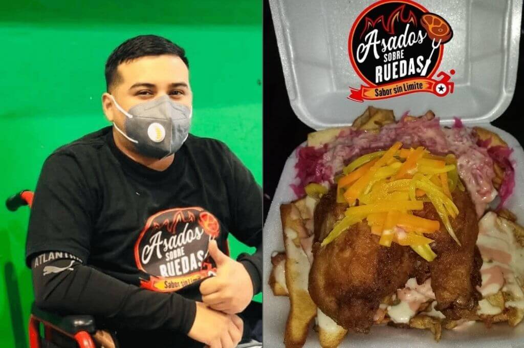El joven trabajaba de albañil, pero al momento de sufrir un asalto, donde le dispararon, su vida tomó otro rumbo al quedar sin la movilidad en sus piernas, de ello se inspira el nombre de su negocio “Asados sobre ruedas”, el cual está abierto al público desde hace un año.