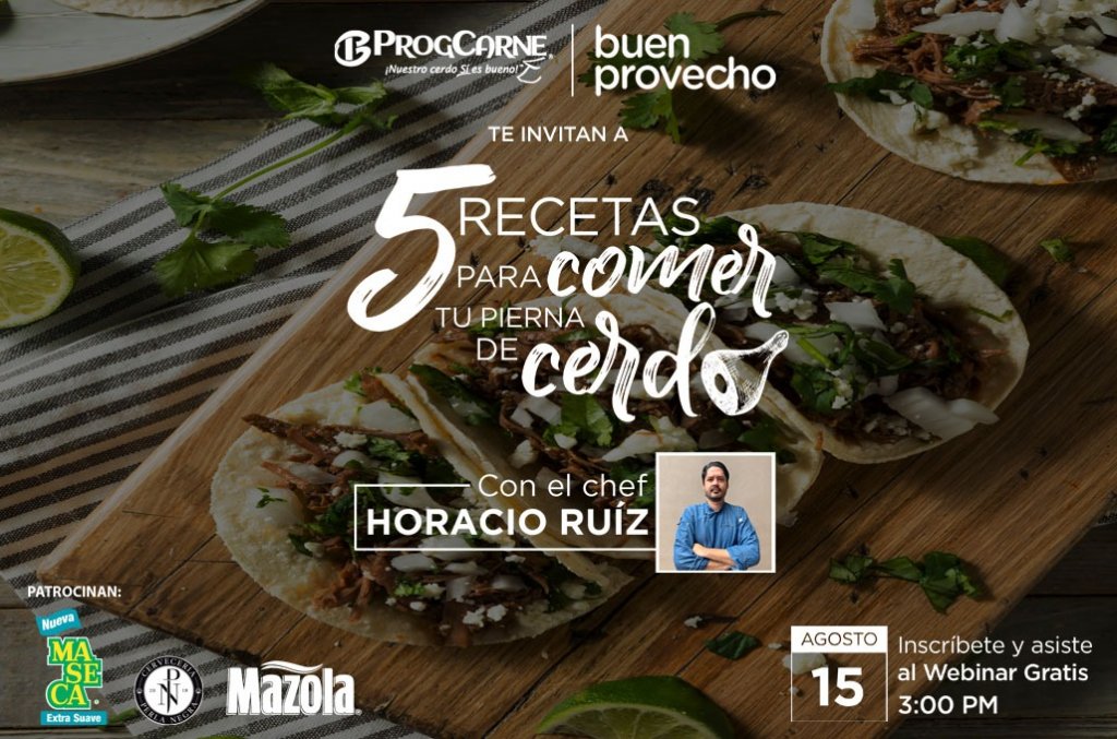 Si eres apasionado por la cocina y te gusta comer delicioso, esta es la oportunidad que estabas esperando para ampliar tus conocimientos culinarios. Gracias a Progcarne, Buen Provecho, Mazola y Maseca aprenderás de forma gratuita el método perfecto, diferente y fácil de hacer tu pierna de cerdo. Además, en el webinar podrás conocer cinco diversas formas de comer la deliciosa pierna de cerdo de Progcarne.