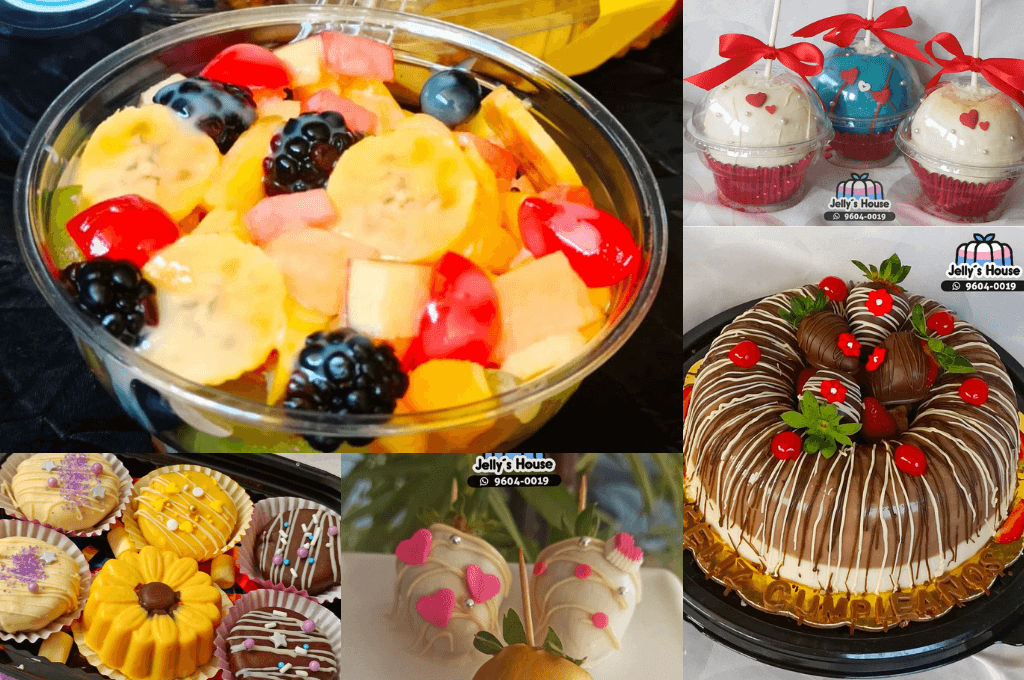 Además de elaborar pasteles y postres de gelatina con frutas; Jelly´s House, cuenta con una gran variedad de productos como ser: postres y pasteles de flan, desayunos sorpresa, manzanas y fresas cubiertas de chocolate, arreglos frutales, donas, letras con dulces y vasos de gelatina de sabores.