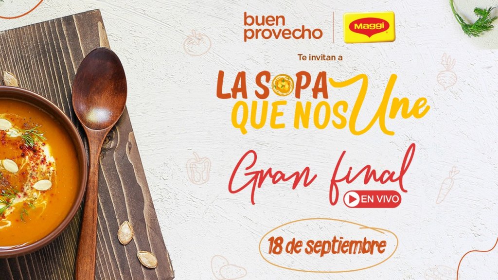 Finalizó la primera ronda del aclamado concurso de «La Sopa que nos Une», de MAGGI® y Buen Provecho. Concurso que se ha llevado a cabo de forma digital, en la plataforma de Facebook de Revista Buen Provecho. Fueron 10 los participantes que se disputaron llegar a la semifinal. Esta dinámica consistió en que se les hizo llegar un kit de producto MAGGI® a cada uno de los seleccionados; para que pudieran hacer su sopa participante, debían tomarle una foto y publicarla en Facebook; los cuatro favoritos de la audiencia serían los que pasan a la siguiente etapa de semifinales.