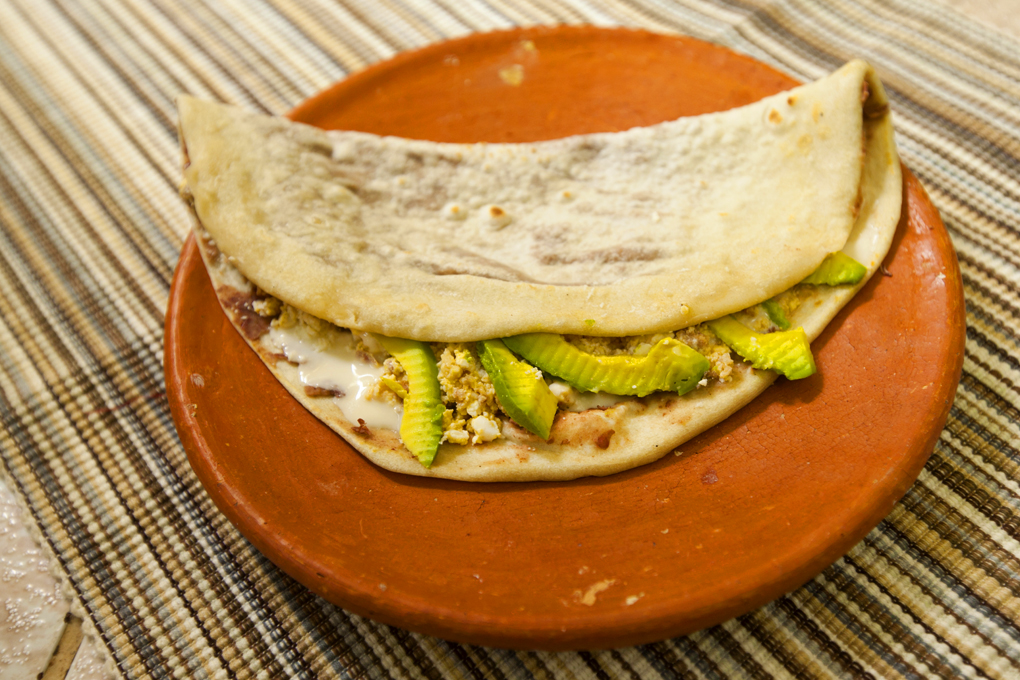 Esta suculenta baleada incluye, una cama de aguacate en su interior es tan generosa la cantidad del mismo que se sale de la tortilla de harina, sus acompañantes son el delicioso huevo cremoso, chorizo, frijoles, queso o mantequilla, el que más te apetezca.