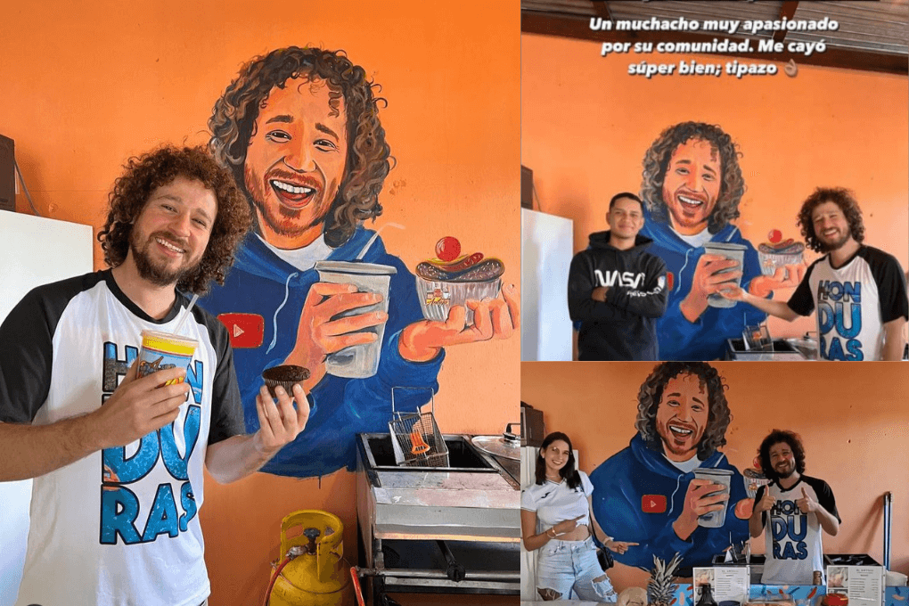 Visitaron una cafetería llamada «El Antojo«, ubicada en la colonia Nueva Capital. El dueño es Bayron Espino, un joven artista que realiza murales, por lo que no perdió la oportunidad de retratar al influencer disfrutando de un batido y un cupcake. Cabe resaltar que, Luisito quedó tan encantando que hasta subió una foto a su perfil de Instagram y Facebook.