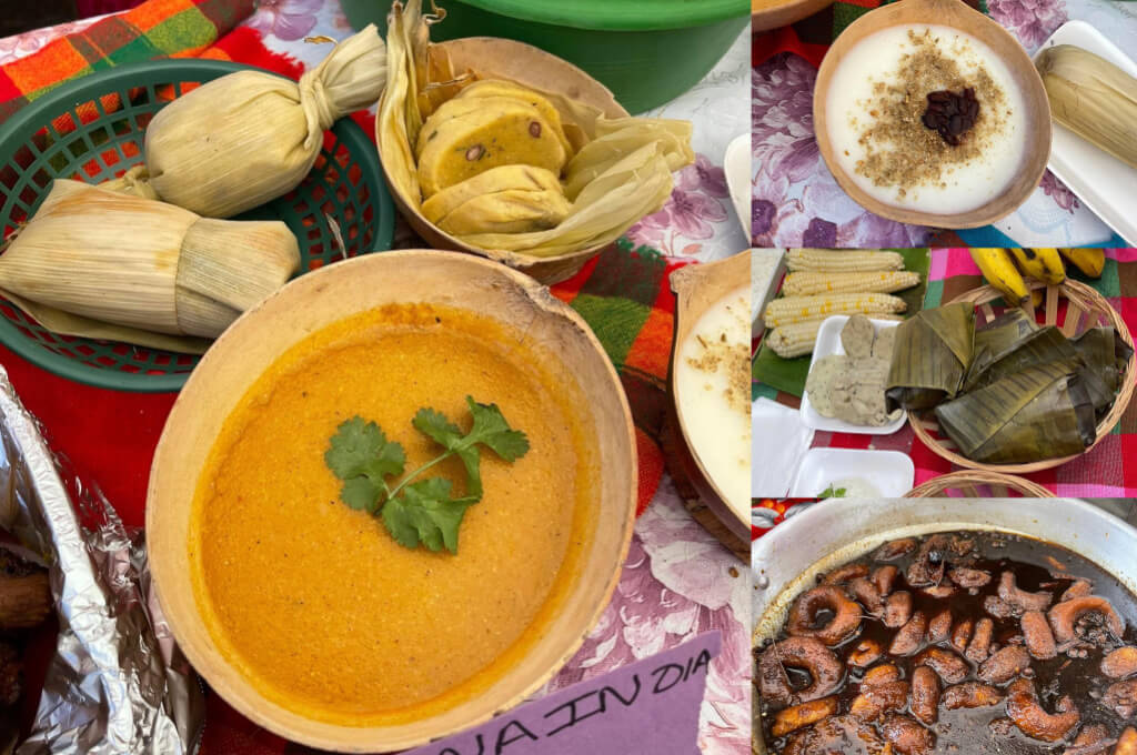 Entre los platillos que se prepararon duraante el Festival cultural del Maíz se encuentran las tradicionales tortillas que no pueden faltan en la mesa de los hondureños. También fritas de elote, ticucos, pollo en pinol, atol agrio, elotes asados y sopa de pinol con gallina india.