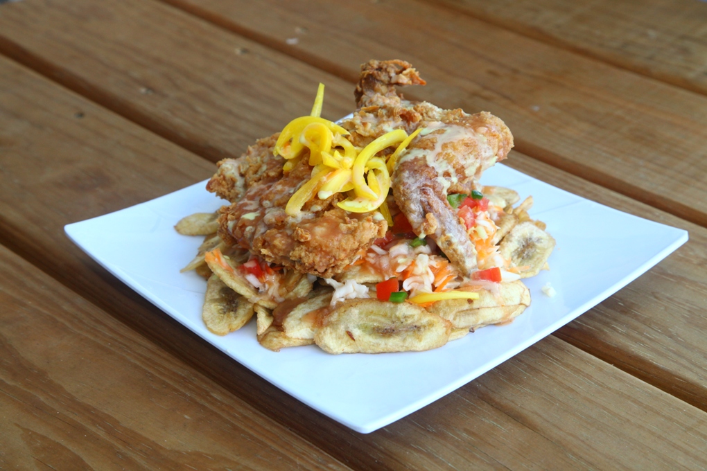 En la costa norte el pollo chuco se caracteriza por ser acompañado de tajadas de guineo verde.