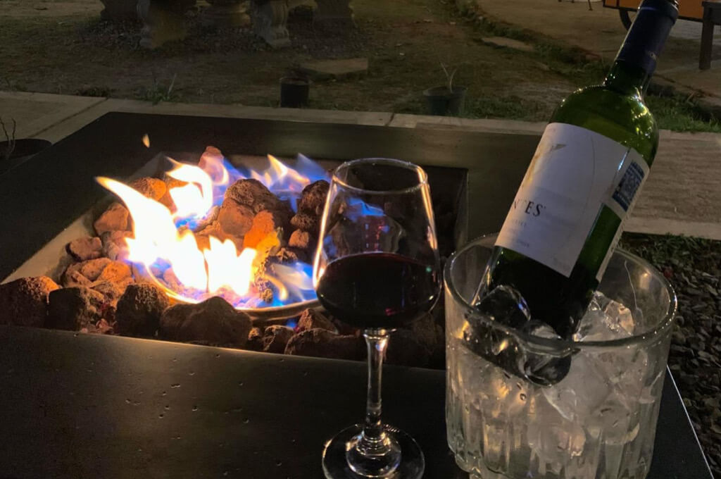 La calidez de la fogata y un buen vino, nada mejor.