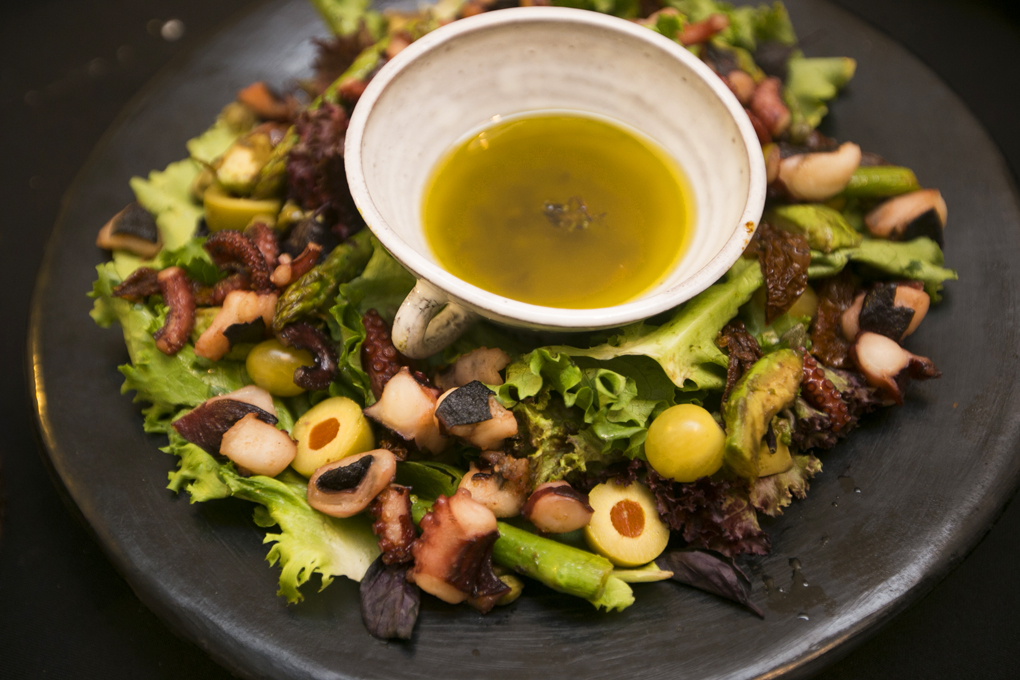La ensalada Nicoise con pulpo, fue otro de los platillos más gustados de la noche. Al igual que el calamar relleno con arroz negro del deleilte de todos los invitados al Chef´s Table en el MIN.