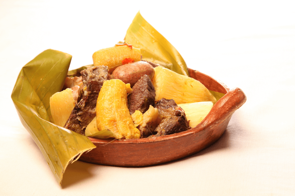 Este platillo es una mezcla de carne salada, costilla y chorizo, con yuca, plátano maduro, plátano verde. Sin duda una verdadera delicia olanchana, que ha cautivado por su sabor tan exquisito a miles de hondureños y extranjeros. Uno de los platillos típicos familiares, que poco a poco se ha ido convirtiendo en una forma de emprender con la venta de este.