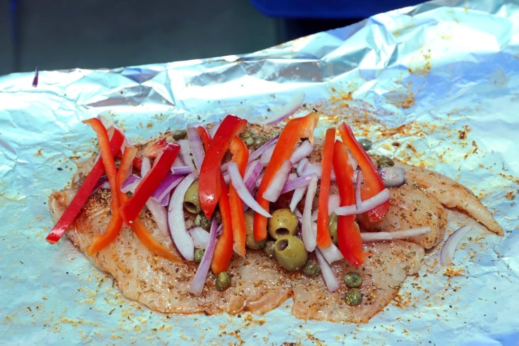 La primera receta era un filete de pescado relleno y se realizó envuelto en papel aluminio para luego llevarlo a la parrilla.