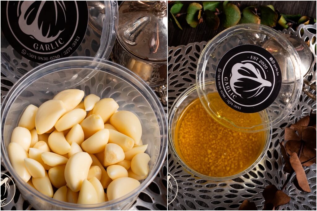 En Garlic podrás encontrar ajo entero pelado ya listo para cocinar, que lo puedes solicitar con o sin aceite de oliva. También ofrecen ajo finamente picado, en versión con o sin aceite de oliva. Ideal para tener a la mano este ingrediente que realza el sabor de los platillos caseros.