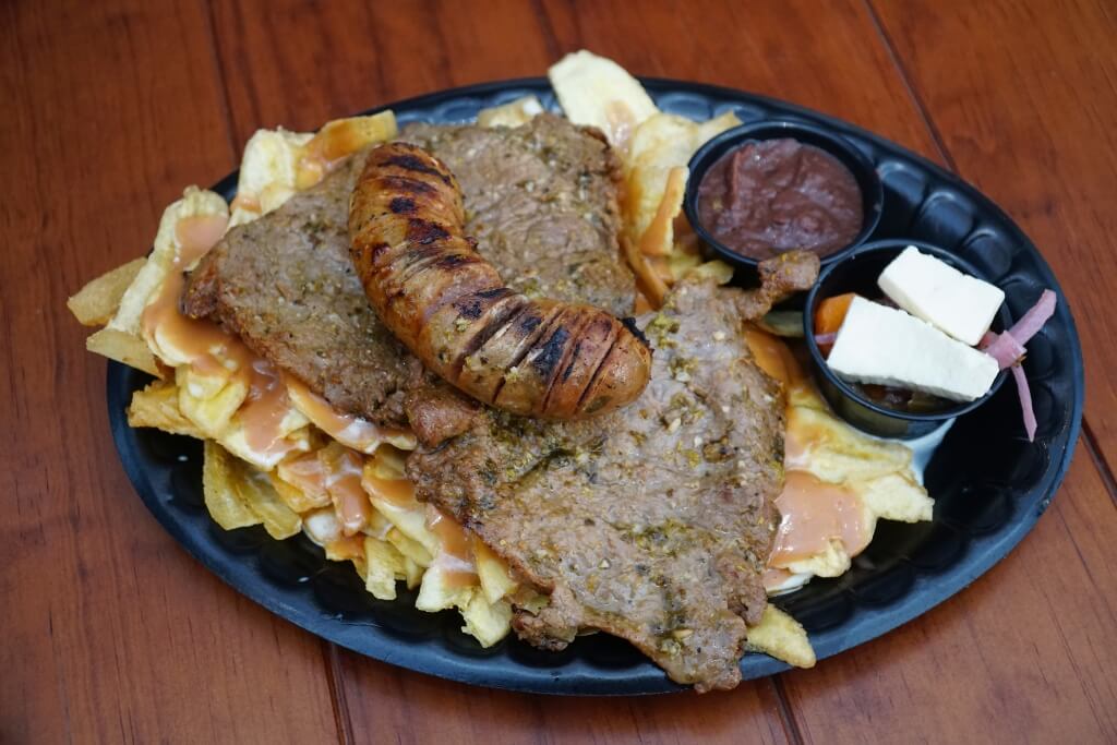 En su menú también encontrarás alitas de pollo en salsa barbacoa o búfalo, pollo asado, pollo asado en salsa barbacoa, carne de res, costilla criolla, chorizo, baby back ribs, platos mixtos y parrilladas.