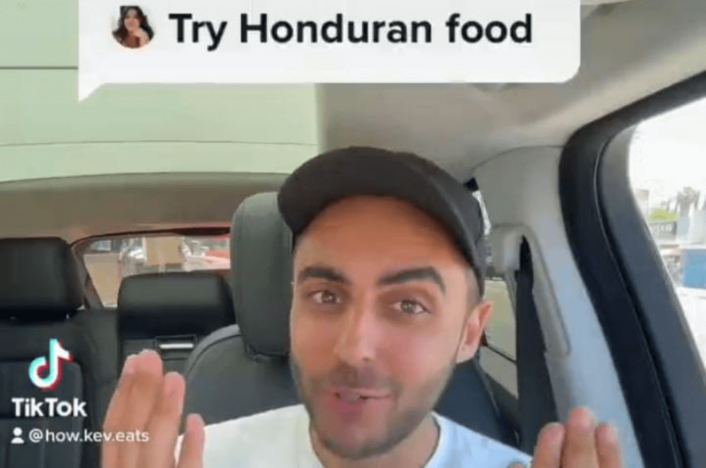 Kevin Noparvar es un famoso Tiktoker estadounidense que se dedica a probar comida y postres de diferentes países del mundo, para luego subir su reacción en su perfil de TikTok. En este caso uno de sus seguidores le aconsejó que probara la comida catracha, por lo cual el influencer buscó un restaurante donde comprar la comida, y al probarla quedó encantado son su sabor. Incluso al final del video menciona que es una de las mejores cosas nuevas que ha probado en este 2021.