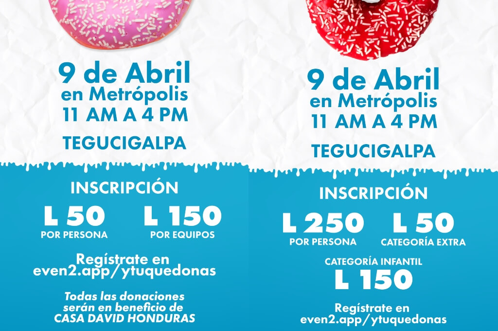 El corazón de los hondureños está lleno de amor, tanto así que cuando alguien necesita ayuda no dudan en unirse para darle su apoyo. Por ejemplo: Casa David, un hospedaje espectacular que se encarga de darles a las personas que vienen del interior del país un techo para hospedarse. Por lo que, para recaudar fondos esta noble institución ha creado una campaña llamada «¿Y tú qué Donas?», la cual se desarrollará en Torre Metrópolis, donde habrá varias actividades para la recaudación.