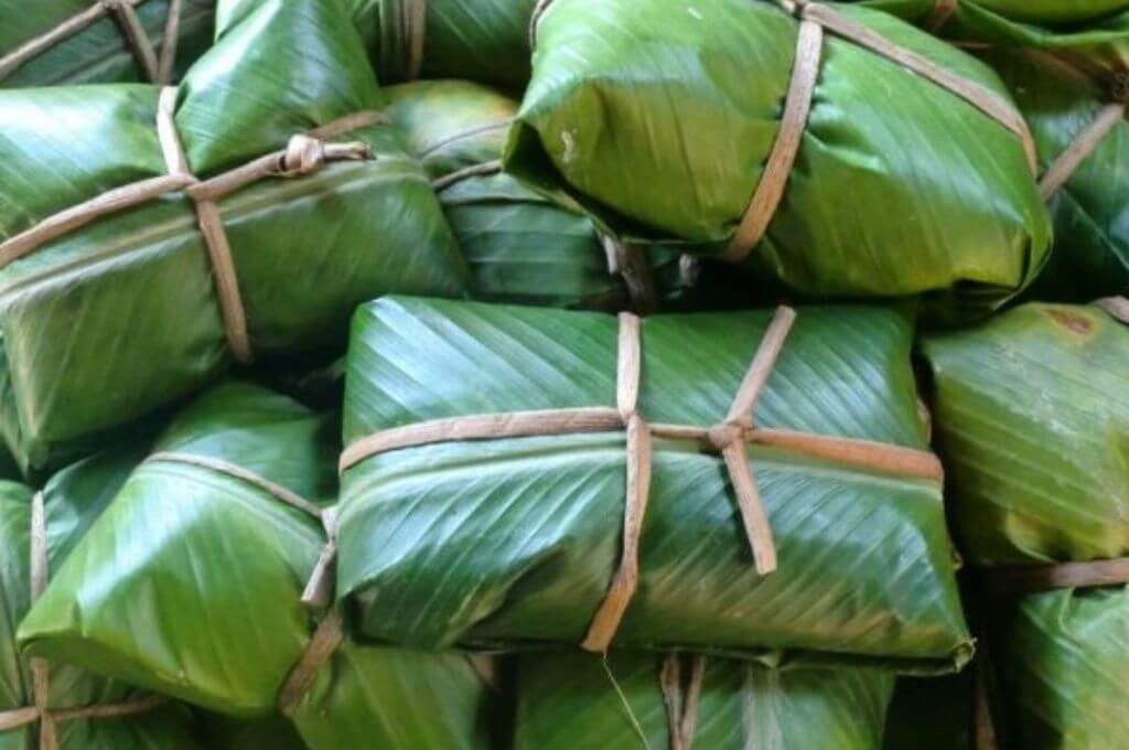 El nacatamal es un alimento típico elaborado a partir de masa de maíz y envuelto en hojas de plátano. Este plato tradicional se rellena con trozos de carne de cerdo o pollo, acompañados de arroz, pasas, garbanzos, papas, guisantes y aceitunas.