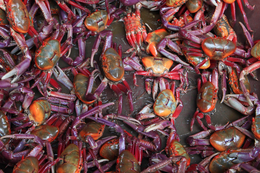 Traídos de la isla de Amapala, llegan las jaibas para las mejores sopas de los domingos. También encontrarás camarones tigre, pargo, calamar y pulpo. No desaproveches llevar mariscos frescos para hacer las sopas del domingo.