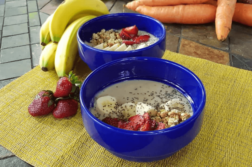El bowl de banano, es básicamente un batido o smoothie de fruta. Es una bebida cremosa preparada a base de trozos y zumos de fruta, concentrados o congelados, mezclados tradicionalmente con productos lácteos, hielo o helado.