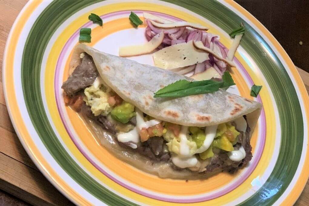 - Armar la baleda, untando primero los frijoles para luego colocar las fajitas, encima el huevo cremoso, el aguacate y la mantequilla al gusto.