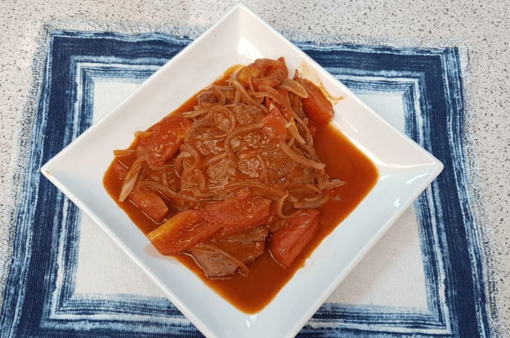 El bistec entomatado es una deliciosa receta casera y que nos trae a memoria esos recuerdos en casa de la abuela. Sin embargo, esta receta tiene el sello personal del chef Carlos Espinal al incorporar un ingrediente diferente; la cerveza. Este elemento añade un sabor particular y exquisito a la preparación, una versión que vale la pena probar ya que todos los sazones se fusionan para crear un verdadero espectáculo para el paladar.