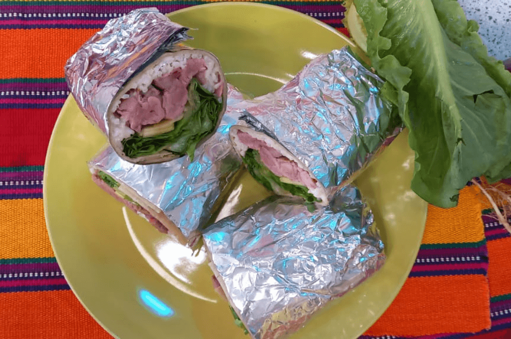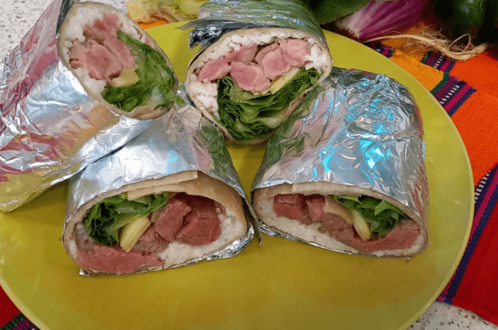 Los burritos de carne son una excelente forma de comida para llevar, ya que puedes comerlo con facilidad gracias a cómo se sirven. El burrito es de origen mexicano, y básicamente consiste en una tortilla de harina de trigo, rellena de ingredientes como carnes, arrroz y vegetales. Hay una infinidad de maneras de hacer los tan famosos burritos, sin embargo, el chef Carlos Espinal nos propone esta delicia que se hace con carne de res; un arroz aderezado y lechuga.