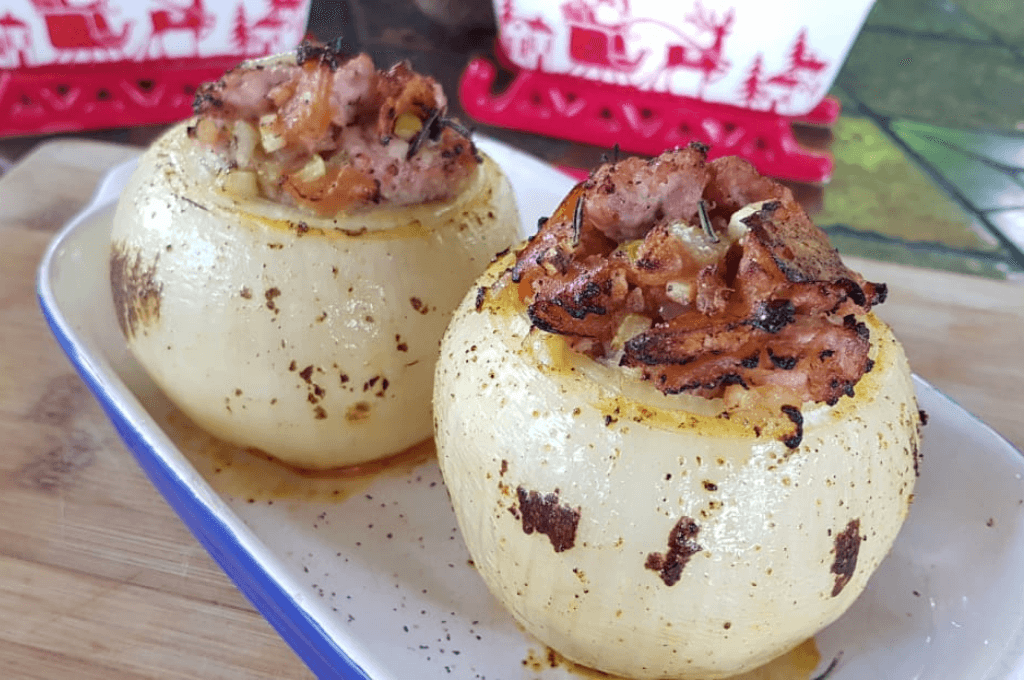 Cebollas rellenas, una deliciosa receta del chef Carlos Espinal.
