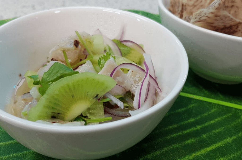 Los sabores frutales en la gastronomía de verano es infaltable. Nos encanta que podemos implementar frutas en nuestras recetas y así darle un sabor dulce, diferente y fresco a los platillos. Tal es el caso de este ceviche con kiwi, una preparación exquisita para disfrutar en casa mientras disfrutamos del calor de la temporada.