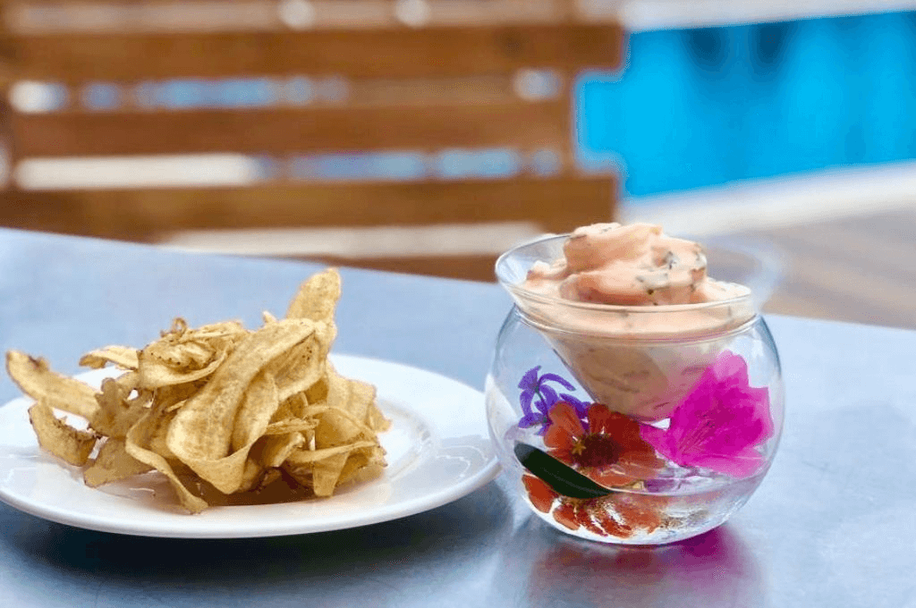 - Dejar por último el camarón precocido para servir con la salsa. Servir refrigerado acompañado de galletas o chips de banano.
