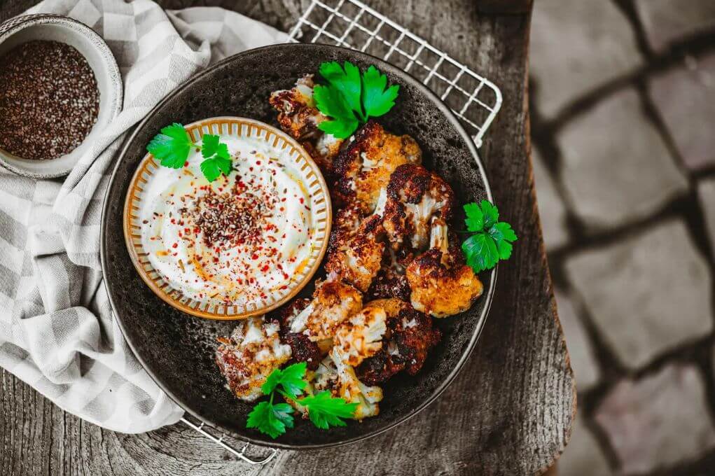 Coliflor frita con aderezo des ricotta poblano y habanero