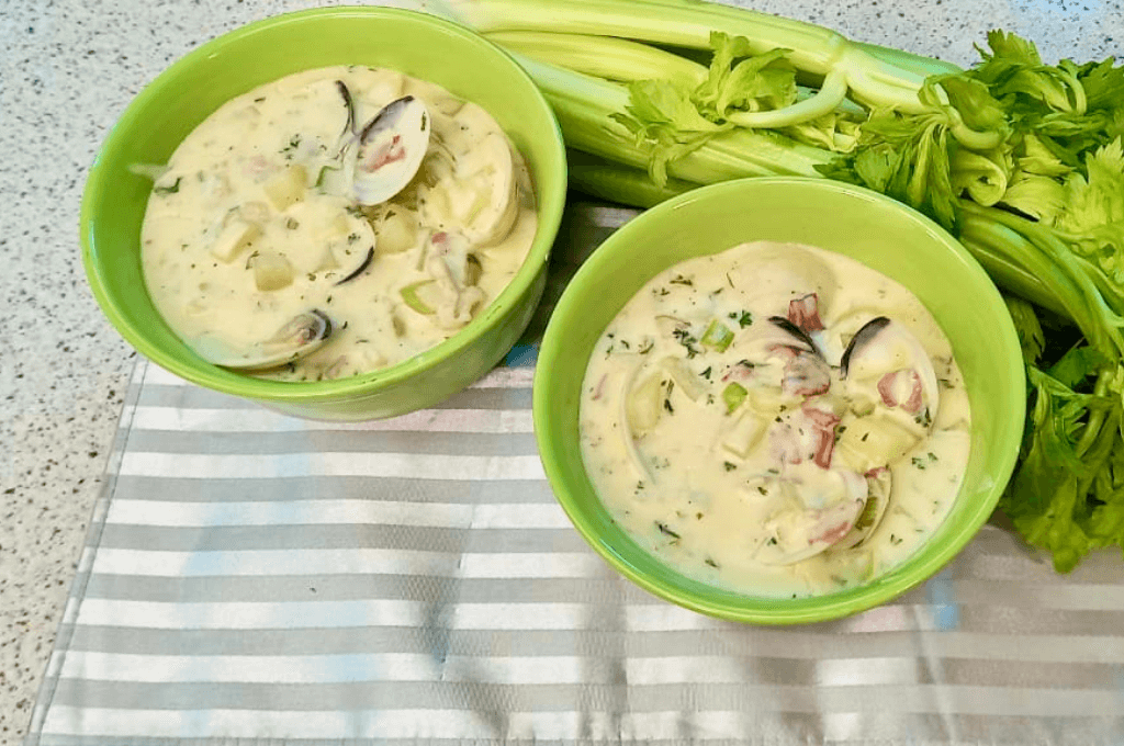 La crema de almejas y papa aportan muchos nutrientes. Son bajas en grasa y ricas en proteínas de alta calidad. Además, las almejas contienen vitaminas B12, necesarias para fortalecer el sistema nervioso y activar el metabolismo; son fuente importante de hierro y otros muchos minerales. En dietas para bajar de peso, las almejas deberían ocupar un lugar principal, ya que son pobres en calorías. Nadie se resiste a un plato de almejas bien preparadas.