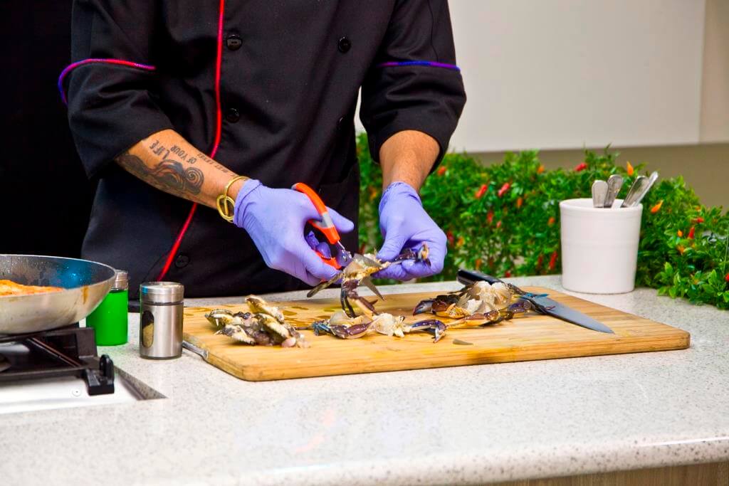 Por supuesto, el chef Carlos Espinal recomienda que con ayuda de un cuchillo extraigas desde la parte trasera el caparazón de la jaiba y así llegar con facilidad a la carne. Luego de eso, se lavan con ayuda de abundante agua para desinfectarlas.