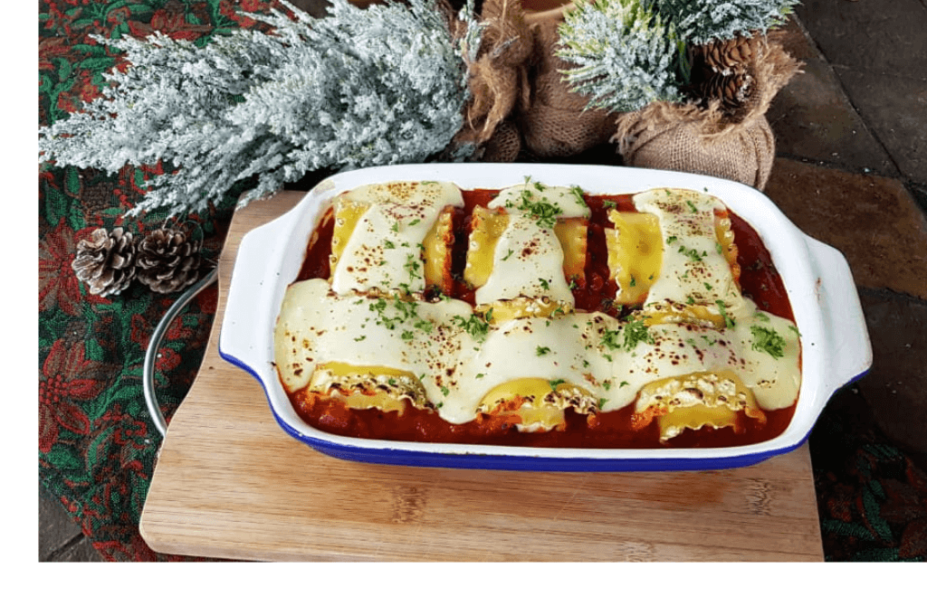 En esta preparación se transforma la clásica lasaña ya que es con el toque de Buen Provecho. Esta versión se enrolla las láminas de pasta y se rellena con salsa cremosa de pasta, quesillo, espinacas entre otros ingredientes. Recordemos que el ingrediente estrella son las laminas de lasañas, además es una excelente opción para estas fiestas decembrinas.