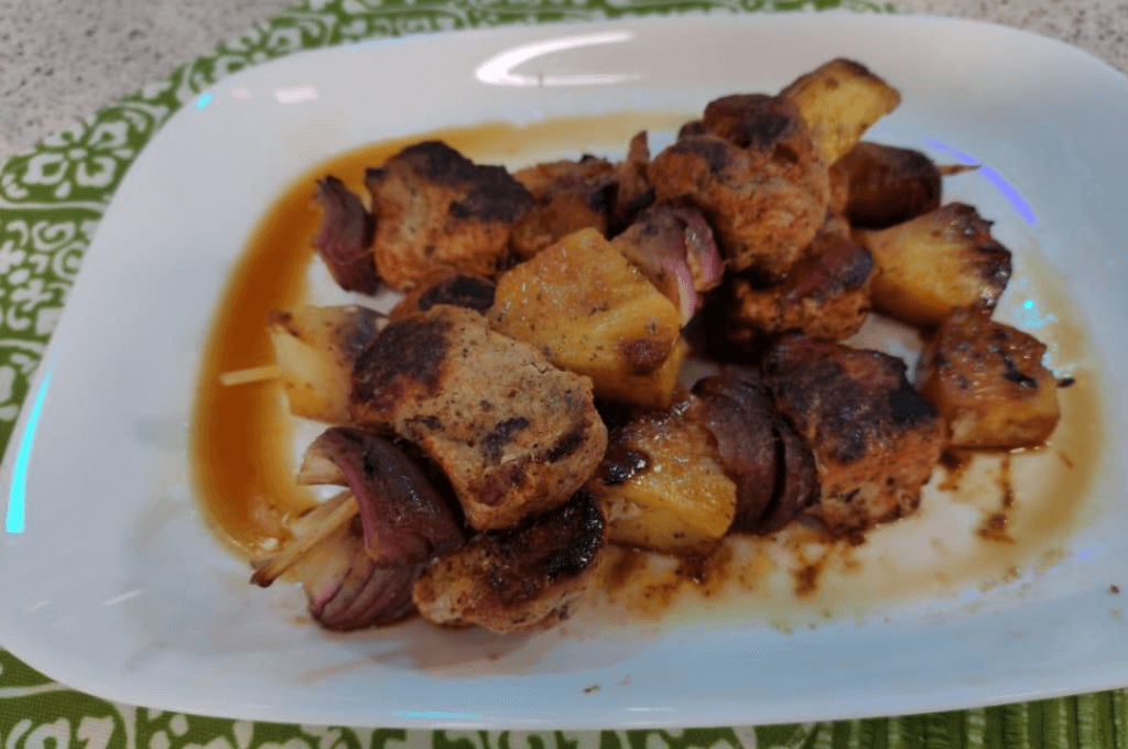 - Servir en la cáscara de una piña, colocar una cama de lechugas y luego los camarones. Decorar con el limón y semillas de sésamo tostado, bañar con el aderezo de mango y menta.