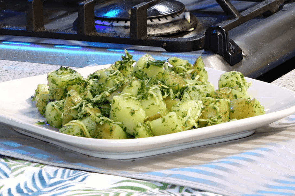 La receta de ensalada de papas y chimichurri recoge lo mejor de los ingredientes naturales que se fusionan en un plato cargado de buenas sensaciones. De sus campos nace una buena materia prima, el oro líquido, el mejor aceite de oliva del mundo tiene su denominación. Con él y una buena combinación de las papas, perejil, queso ahumado y mucho amor, vamos a cocinar una receta extraordinaria de ensalada de papas y chimichurri, atrévete a probarla. Para obtener un sabor un poco más exótico, hay que añadir a la ensalada trozos de rábanos.